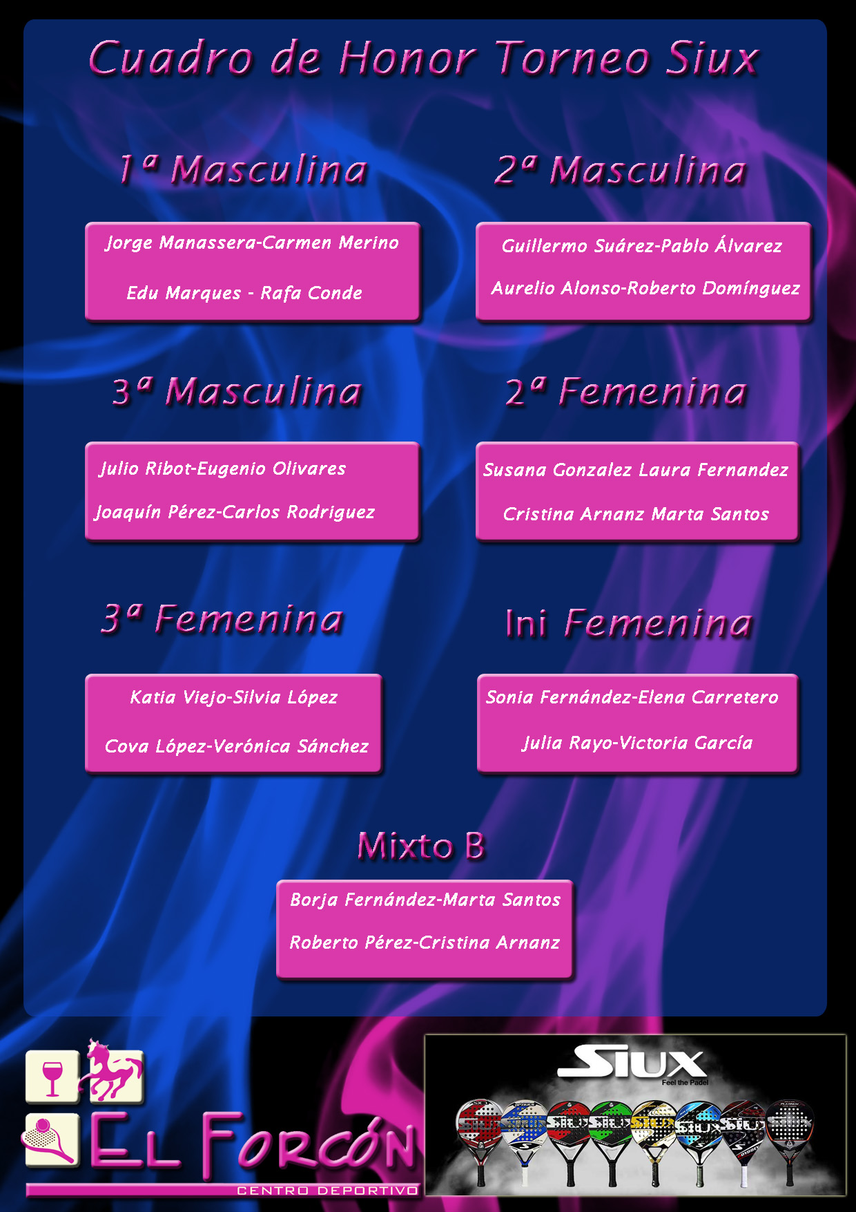 Cuadro de Honor I Torneo Siux Feb 2015